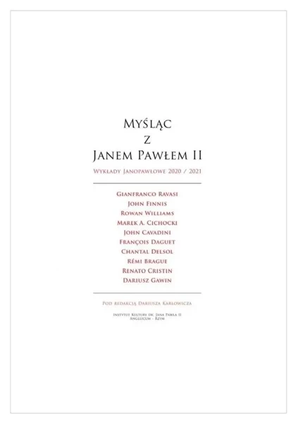 Oddajemy w Państwa ręce zbiór dziesięciu wykładów z cyklu JP2 Lectures, które wygłoszone zostały w pierwszym roku działalności rzymskiego Instytutu Kultury św. Jana Pawła II. Do udziału w tym cyklu, który będzie kontynuowany w kolejnych latach, zapraszamy wybitnych współczesnych intelektualistów, którzy w dialogu z myślą św. Jana Pawła II podejmują się namysłu zarówno nad tym, co w jego dziele intrygujące i żywe, jak i nad tym, co szczególnie ważne i trudne.