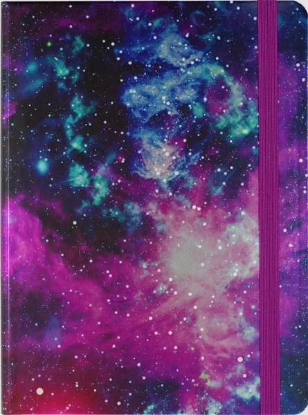 Projekt okładki przedstawiający opalizującą scenę kosmiczną w barwach srebra, niebieskiego, ciemnej nocy i magenta, nadaje notatnikowi niepowtarzalny i wyjątkowy charakter. Wnętrze okładki również zostało wykonane z dbałością o detal.