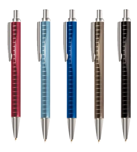 Model ten posiada obudowę wykonaną z aluminium, a jego wkład charakteryzuje się dużą pojemnością. Grubość nanoszonej linii wynosi 0,7 mm, co zapewnia precyzyjne pisanie. Zestaw zawiera 20 sztuk piór automatycznych.