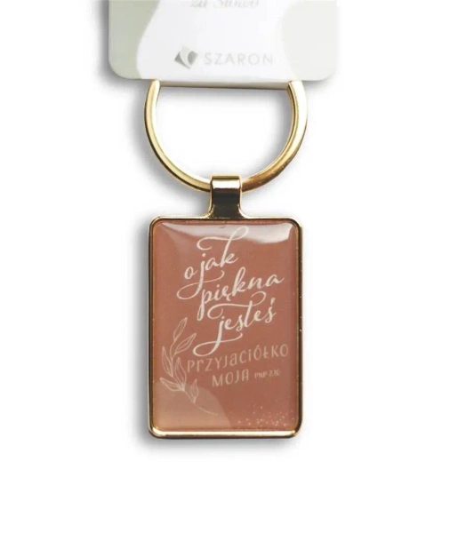 Brelok ma wymiary 51mm x 30mm x 4mm - idealne do przyczepienia do kluczy lub innego akcesorium. Wykonany jest z metalu w pięknym złotym kolorze. Grawerowany napis: "o jak piękna jesteś przyjaciółko moja PNP 2,10" dodaje mu unikalności. Brelok jest prostokątny, ale to jego oryginalny design go wyróżnia. Kup brelok i zacznij każdy dzień z myślą, że jesteś piękną i wartościową osobą w oczach Boga.EAN: 5902574168870