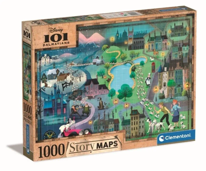 Puzzle 1000 Story Maps 101 Dalmatyńczyków - Clementoni