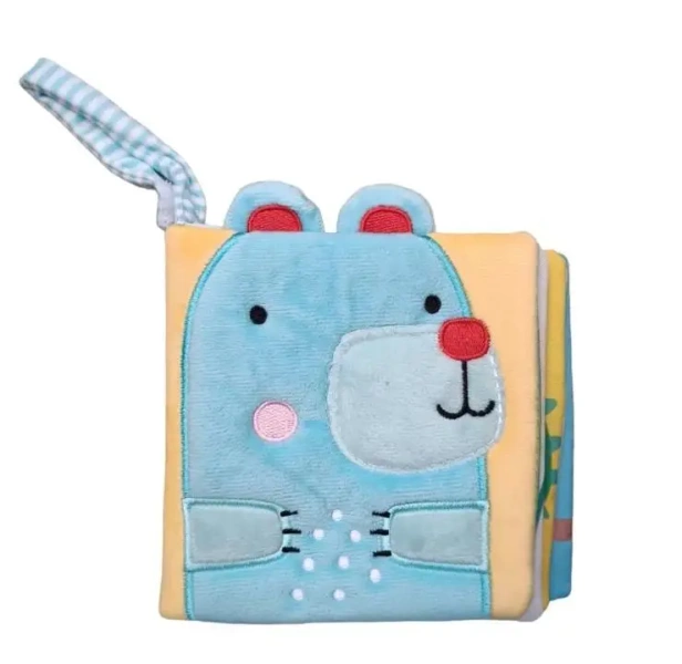 Ta urocza książka ilustrowana, ozdobiona uszkami pluszowego zwierzaka, wykonana jest z wyjątkowo aksamitnej i trwałej tkaniny.Wbudowane hafty oraz szeleszcząca folia osadzona w końcowej stronie sprawiają, że książeczka stymuluje różne zmysły malucha. Dzieci mogą tulić ją niczym pluszowego przyjaciela, odkrywać fakturę haftowanych wzorów, przeglądać ilustracje czy nasłuchiwać szelestu kartek. Eliptyczny uchwyt pozwala na przymocowanie książeczki do wózka dziecięcego lub torby, dzięki czemu można ją zabrać na każdą wycieczkę. Ta książeczka z pewnością przyciągnie uwagę Twojego dziecka na wiele godzin!