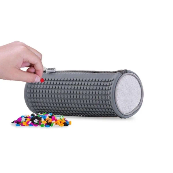 Na przedniej stronie piórnika znajduje się specjalny silikonowy panel, na którym możesz układać różnorodne wzory. Możliwości są nieograniczone!