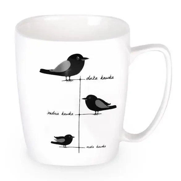 Kubek KAWKI jest doskonałym upominkiem nie tylko dla zapalonego kawosza, ale również dla kogoś, kto uwielbia ptaki. Ten dowcipny i miły produkt zawdzięcza swoje powodzenie wdzięcznie brzmiącemu słowu polskiego języka, które jest w stanie zawrzeć piękno dwóch cudowności!