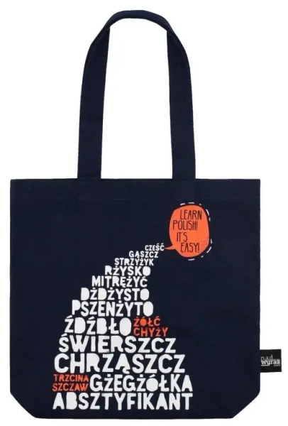 Uczysz się polskiego i wciąż zmagasz się z wymową trudnych słów takich jak źdźbło, chrząszcz, czy gżegżółka? A może masz znajomych, którzy poszukują wyjątkowych pamiątek z Polski? Podaruj im tę unikalną, bawełnianą torbę z hasłem LEARN POLISH! IT'S EASY!. Startując swoją edukacyjną podróż z naszą torbą, każdy szybko przekona się, jak niezwykła jest polszczyzna. Torba sprawdzi się świetnie zarówno jako upominek dla osoby uczącej się polskiego, jak i dla wielbiciela języków.