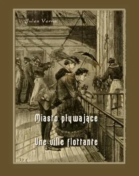 Miasto pływające - Une ville flottante. Książka w dwóch wersjach językowych: polskiej i francuskiej. Version bilingue: polonaise et française. Powieść Juliusza Verne'a z cyklu literackiego Niezwykłe podróże (…) Książka powstała w oparciu o wrażenia z krótkiej podróży do Stanów Zjednoczonych Ameryki, którą Verne wspólnie z młodszym bratem Pawłem odbył w 1867 na pokładzie największego wówczas statku świata - parowca SS Great Eastern. Pobyt w Ameryce był krótki - 8 dni (w tym od 10 kwietnia do 14 kwietnia wycieczka nad wodospad na Niagarze i do Kanady) z konieczności - atrakcyjna, promocyjna cena powrotnego biletu morskiego łączyła się z krótkim postojem statku w amerykańskim porcie. (http://pl.wikipedia.org/wiki/Pływające_miasto).