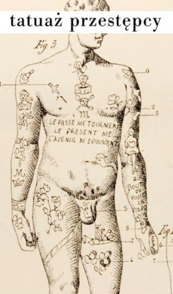 Ci spośród nas, którzy posiadają mnóstwo zboczeń, tym się różnią od człowieka uczciwego i prawego, że ozdabiają swe ciała przeróżnymi szkaradnymi malunkami. Oszuści, rabusie, podpalacze, złodzieje, próżniacy, włóczędzy, zabójcy, pederaści i prostytutki traktują tatuaże jak spis swoich przeszłych występków oraz zapowiedź zbrodni zamierzonych. Nierzadko są wśród tych zdobień rysunki lubieżne, które recydywiści każą sobie wykłuwać w miejscach nieprzyzwoitych, a także sekretne znaki, stosowane przez członków tajnych stowarzyszeń. Zwyczajem tym przestępcy niemało przypominają ludy dzikie i pierwotne, a nie bez znaczenia pozostaje fakt, że większość z nich wywodzi się z niższych stanów. Autor tego naukowego dzieła ów zwyczaj opisał, a także liczbami, przykładami i rysunkami swoje obserwacje poparł, ażeby o ich prawdziwości nikt wątpić nie mógł.