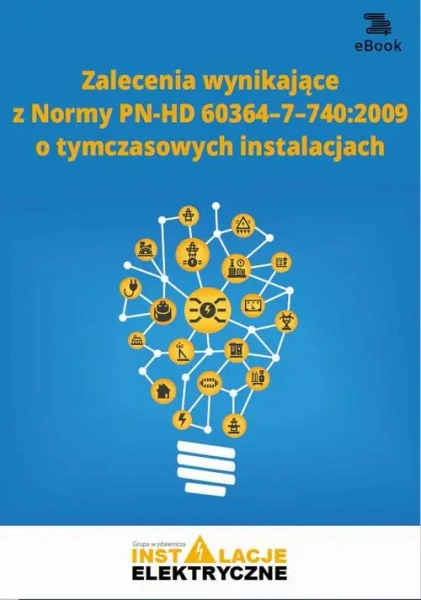 Norma PN-HD 60364-7-740:2009 dotyczy obiektów przeznaczonych do wielokrotnego przenoszenia i tymczasowego instalowania na terenie targów, wesołych miasteczek, cyrków i innych tego typu lokalizacji. Obejmuje projektowanie, prawidłowy montaż oraz zasady bezpiecznego użytkowania instalacji oraz maszyn elektrycznych.W ebooku przedstawiamy w skondensowany sposób podstawowe wymagania wynikające z tej normy dotyczące: zasilania, ochrony przed porażeniem, dopuszczalnych zabezpieczeń tymczasowych instalacji.