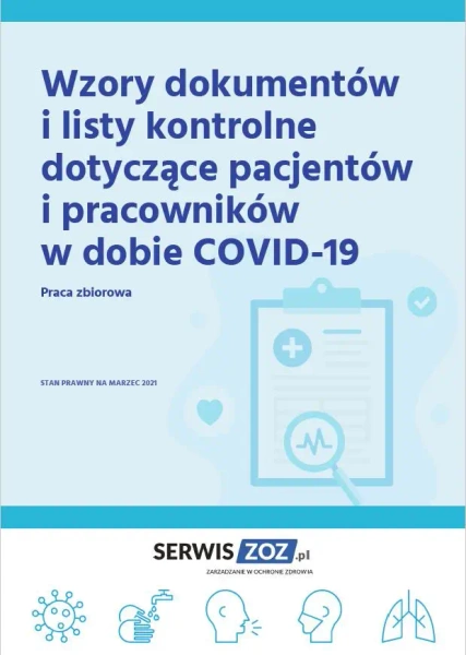 W tym e-booku znajdziesz wiele przydatnych wzorów dokumentów (np. kwestionariusz wstępnego wywiadu przesiewowego przed szczepieniem osoby dorosłej przeciw COVID-19) i list kontrolnych (np. zasady kierowania pacjenta do izolatorium w dobie COVID-19), które pomogą Ci nie tylko właściwie zorganizować pracę, lecz także zabezpieczyć się przed ewentualnymi zarzutami pacjentów, np. w przypadku zakażenia, i dadzą możliwość regresu wobec pracownika niestosującego się do wytycz, które codziennie będą wspierać personel medyczny w wykonywaniu swoich czynności.