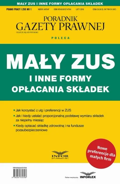 W publikacji omówione zostały nowe zasady składania przez przedsiębiorców dokumentacji zgłoszeniowej i rozliczeniowej. Uwzględniono zmiany w tym zakresie, które weszły w życie 1 stycznia 2019 r. Zmianie uległy nie tylko same druki zgłoszeń czy miesięcznych raportów rozliczeniowych, lecz dodane zostały także nowe kody ubezpieczeniowe stosowane od 1 stycznia 2019 r.