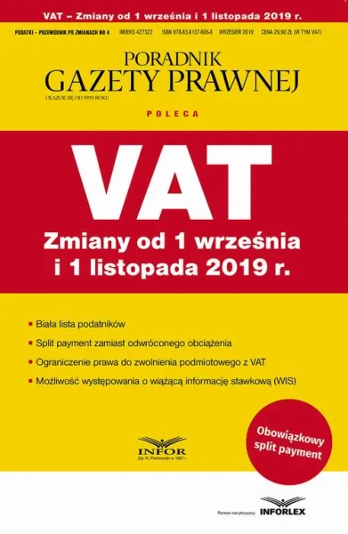 Publikacja zawiera ujednolicony tekst ustawy o VAT oraz przewodnik po zmianach w VAT od września i listopada 2019 r.