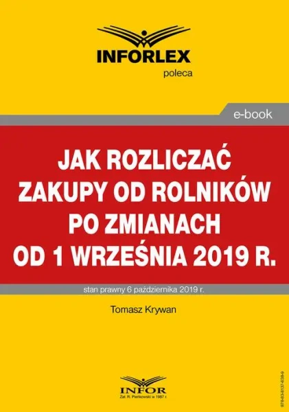 eBook Jak rozliczać zakupy od rolników po zmianach od 1 września 2019 r. - Tomasz Krywan