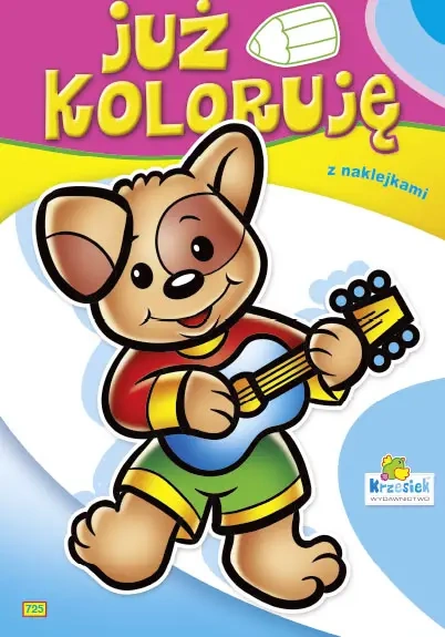 Kolorowanka z naklejkami. Już koloruję Piesek z gitarą 725