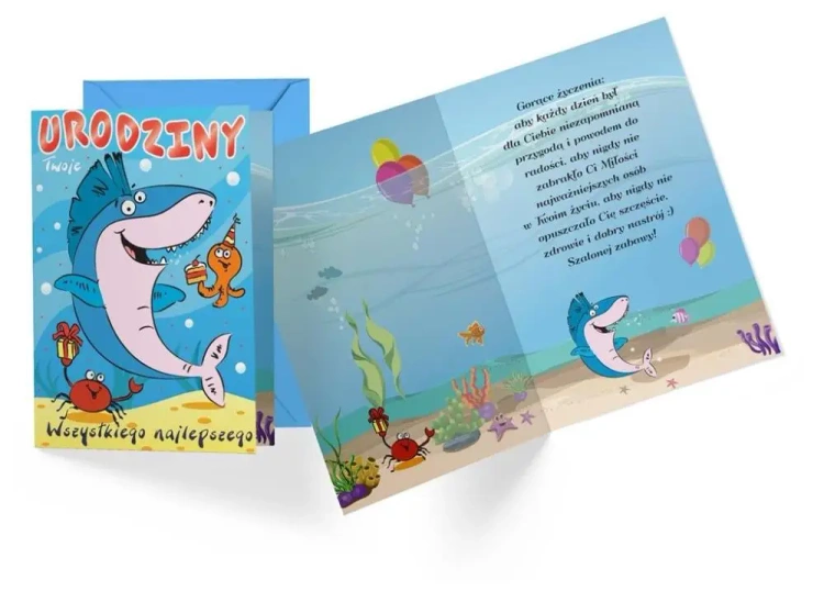 Karnet B6 PR-414 Urodziny dziecięce (rekin) - Kukartka