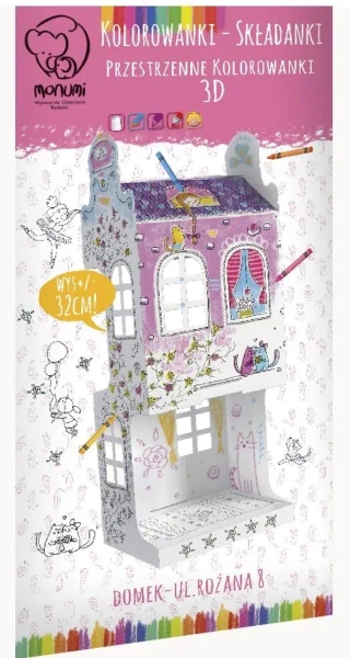 Kolorowanka-Składanka 3D MINI - Domek ul. Różana 8 - Monumi