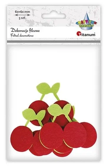 Filcowe czereśnie 3D czerwono-zielone 5szt - Titanum