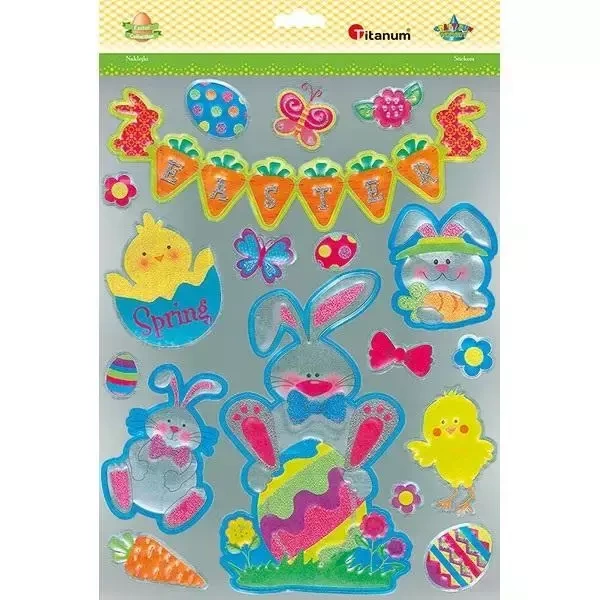 Prezentujemy zestaw 18 unikatowych naklejek metalicznych na folii, które idealnie sprawdzą się jako ozdoby świąteczne. W skład zestawu wchodzą wizerunki takie jak: baner z napisem Easter, wesołe zajączki, urocze kurczaczki, kolorowe pisanki i delikatne motyle.