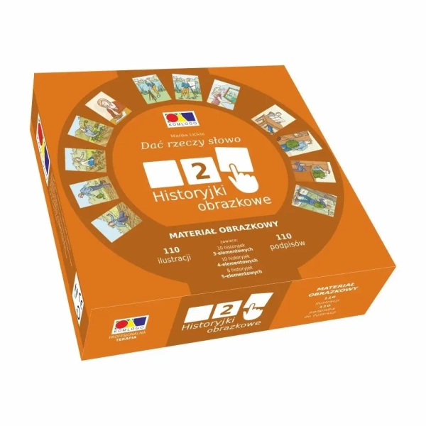 "Podaruj Słowom Rzeczy. Obrazkowe Historyjki 2" to następna odsłona zestawu obrazkowych historyjek stworzonych, by wspierać ćwiczenia językowe dla dorosłych i najmłodszych. Zestaw uzupełniają 110 grafik ilustrujących sceny z codziennego życia (zawiera 10 historyjek 3-elemantowych, 10 historyjek 4-elementowych i 8 historyjek 5-elementowych), wraz z dołączonymi do nich podpisami.