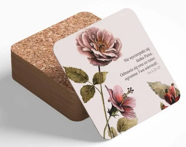 Korkowy uchwyt na kubek o wymiarach 10cm x 10cm