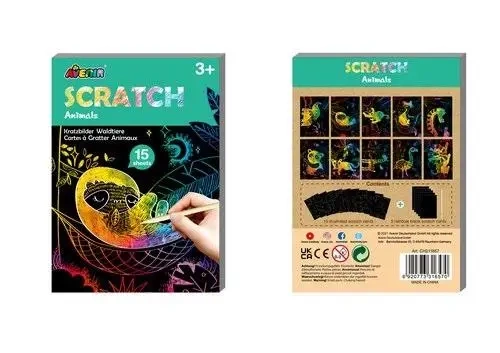 Avenir Scratch to rewolucyjna koncepcja rękodzieła, w której dziecko tworzy obrazy poprzez zdrapywanie powierzchniowej warstwy arkusza, odsłaniając kolorowy spód. Dzięki temu, wydrapywanki uczą kreatywności, a jednocześnie dostarczają niezwykłych wrażeń sensorycznych. Ta wspaniała zabawka edukacyjna jest idealna dla przedszkolaków, niezależnie od płci.