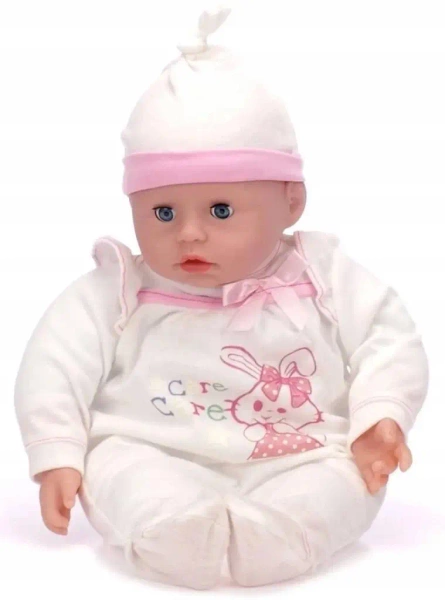 Poznaj uroczą, dużą lalkę Dorotkę typu bobas, która ma miękkie ciałko i jest ubrana w śpioszek i czapeczkę. Lalka z radością śpiewa dziecięce piosenki, takie jak "Pieski małe dwa", "Jesteśmy jagódki", czy "My jesteśmy krasnoludki". Dorotka także potrafi mówić po polsku, więc oprócz śpiewania, również się z Tobą wita, prosi, abyś ją przytulił i ukołysał do snu, a także zachęca do wspólnej zabawy i pyta o posiłek.
