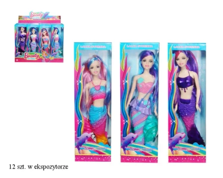 Lalka syrenka przeznaczona dla dzieci z pewnością zachwyci każdego małego miłośnika morskich opowieści. Jej niezwykły ogon mieni się kolorową poświatą - przekonaj się o tym samodzielnie! Zabawka sprzedawana jest w estetycznym, kartonowym opakowaniu z przezroczystym okienkiem, dzięki któremu można ją podziwiać przed rozpakowaniem. Wykonana z myślą o dzieciach powyżej 3 roku życia.