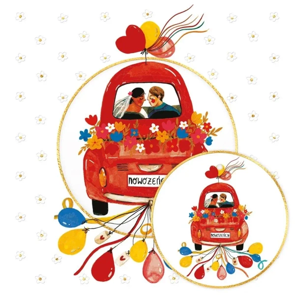 Karnet KW koperta z kółkiem Ślub Garbus - Henry
