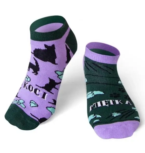 Przedstawiamy KOCIMIĘTKĘ - niezwykłe skarpety stopki z motywem kotów, które przypadną do gustu nie tylko miłośnikom tych czworonożnych przyjaciół! Nasza propozycja to doskonałe połączenie wyszukanych słów, oryginalnych wzorów i komfortu noszenia. To także świetny pomysł na prezent dla kociary czy kociarza. Lecz pamiętaj - zakładając te niezwykłe stopki, być może będziesz częściej obskakiwany przez koty!