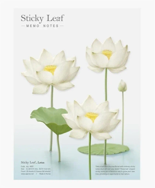Prezentujemy karteczki samoprzylepne indeksujące inspirowane naturą, które cechuje niezwykły design w postaci kwiatów lotosu. Te oryginalne papierowe listki doskonale sprawdzą się zarówno jako zakładki do indeksowania, jak i klasyczne karteczki do notatek w różnych miejscach - w domu, biurze, a także w planerach czy książkach.