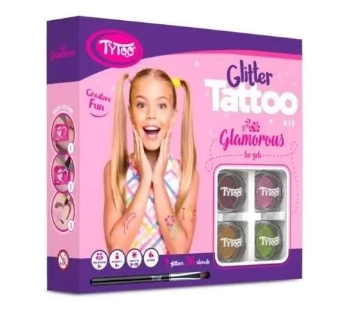 Zestaw zawiera aż 36 tematycznych szablonów inspirowanych motywami zwierzęcymi, roślinnymi i księżniczkami. W opakowaniu znajdziesz również brokat w 4 różnych kolorach, abyś mógł dopasować swoje tatuaże do każdej stylizacji i nastroju.