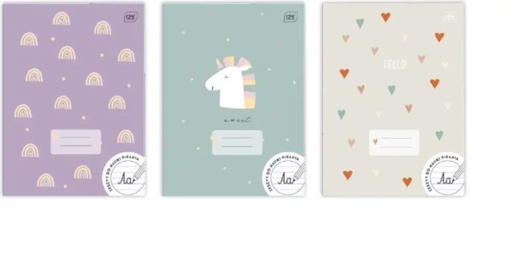 Oferowany zestaw zawiera 10 sztuk zeszytów w formacie A4. Każdy zeszyt posiada 32 kartki, na których znajduje się kolorowa trzylinia, stworzona z myślą o nauce pisania. Wyjątkowy charakter zeszytowi nadaje okładka pokryta lakierem UV.