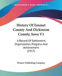 The book titled ""History Of Emmet County And Dickinson County, Iowa V1: A Record Of Settlement, Organization, Progress And Achievement (1917)"" is a comprehensive record of the history of two counties in Iowa, namely Emmet County and Dickinson County. Published by Pioneer Publishing Company, the book covers the settlement, organization, progress, and achievements of these counties from their earliest days up until 1917.The book provides a detailed account of the early settlers who came to these counties, the challenges they faced, and the progress they made in establishing their communities. It also covers the organization of the counties, including the establishment of local governments, schools, and churches.The book highlights the achievements of the people of these counties in various fields, including agriculture, industry, and commerce. It also provides a glimpse into the social and cultural life of the people, including their customs, traditions, and celebrations.Overall, ""History Of Emmet County And Dickinson County, Iowa V1: A Record Of Settlement, Organization, Progress And Achievement (1917)"" is a valuable resource for anyone interested in the history of these two counties in Iowa. It provides a comprehensive and detailed account of the people, events, and achievements that have shaped the history of these counties.This scarce antiquarian book is a facsimile reprint of the old original and may contain some imperfections such as library marks and notations. Because we believe this work is culturally important, we have made it available as part of our commitment for protecting, preserving, and promoting the world's literature in affordable, high quality, modern editions, that are true to their original work.