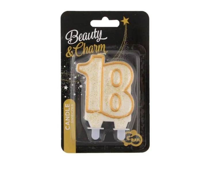 Świeczka liczba 18 urodziny, złoty kontur - Godan