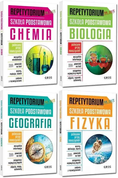 Przedstawiamy najnowszą publikację do nauki geografii, skierowaną do uczniów klas 5-8 szkoły podstawowej. Repetytorium - szkoła podstawowa - geografia to książka idealna do korzystania na co dzień, jak i do powtórek przed klasówką czy sprawdzianem. Jest w pełni zgodna z podstawą programową, zawiera wszystkie wymagane działy tematyczne, a materiał został przedstawiony językiem zrozumiałym i przystępnym także dla uczniów młodszych klas. Kolorowa, nowoczesna oprawa graficzna, liczne tabele, schematy, wykresy, bogaty materiał zdjęciowy i ilustracyjny, wyszczególnienie ważnych definicji pomagają w szybkiej i bezproblemowej nauce, jednocześnie sprawiają, że jest ona łatwa i przyjemna. Są tutaj także zadania wraz z rozwiązaniami. Pomocny jest też znaczek „pewniak na teście”, zwracający uwagę na treści, które najprawdopodobniej pojawią się na sprawdzianach. Polecamy!