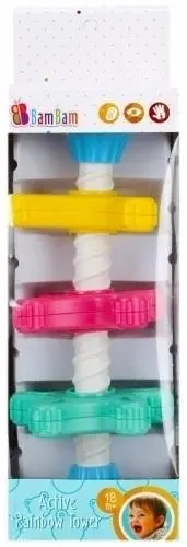Zanurz swoje dziecko w fascynującym świecie kolorów dzięki tej kreatywnej zabawce dla maluchów. Piramidka/wieża aktywna BAM BAM zachwyca swoimi tęczowymi barwami, a trzy pierścienie, przypominające kształtem nakrętki nawleczone na śrubkę, angażują uwagę dziecka i przyciągają jego zainteresowanie.