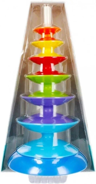 Piroamidka pozwala na ułożenie pierścieni na wiele sposobów, w tym również poprzecznie. Możliwość turlania, podrzucania i dowolnego układania pierścieni sprzyja rozwojowi zdolności manualnych, motorycznych, kreatywnego, a także abstrakcyjnego myślenia. Każdy z sześciu elementów uczy dziecko rozpoznawania kształtów i wielkości. Łącząc pierścienie na statywie, maluch będzie mógł stworzyć piękną, kolorową konstrukcję.