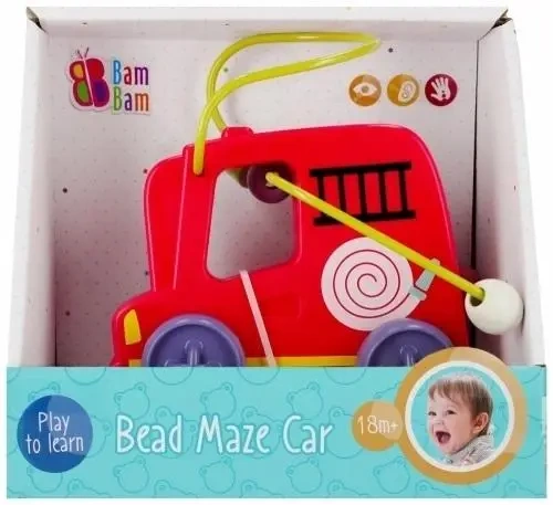 Pojazd Labirynt Straż pożarna BAM BAM to wspaniała edukacyjna zabawka dla dzieci, które pasjonują się motoryzacją i pragną pomagać innym. Ten intensywnie czerwony wóz strażacki ma wyraźnie zaznaczone cechy charakterystyczne dla strażackich pojazdów oraz dodatkowy element w postaci obręczy z kolorowymi koralikami, które poruszają się wraz z jazdą samochodu.
