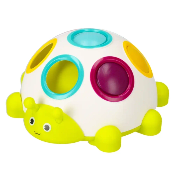 Zabawa polega na przesuwaniu kolorowych półkul i łączeniu ich z odpowiednimi obręczami, co pozwala rozwijać abstrakcyjne myślenie, uczy rozumowania logicznego i wzmacnia poczucie zależności. Żółwik Bam Bam wykonany jest z najwyższej jakości materiałów, przyjaznych dla dzieci, bez ftalanów. Produkt spełnia normy EN-71 oraz CE i gwarantuje bezpieczną zabawę.