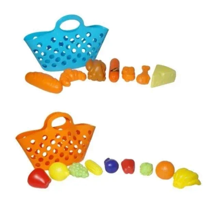 Każdy zestaw zawiera kolorowy koszyczek z jedzeniem, który różni się zawartością: może to być pieczywo, mięso i ser, albo owoce i warzywa. To doskonała zabawka, które sprawią, że czas spędzony w domu stanie się ciekawszy i bardziej kreatywny, podkładając pod świetną zabawę w gotowanie czy prowadzenie sklepu. Zabawka przeznaczona jest dla dzieci, które skończyły już 3 lata. Wymiary, które podajemy, dotyczą samych koszyczków.