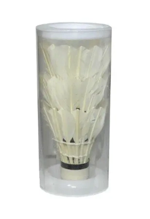 Do Twojej dyspozycji oddajemy zestaw składający się z trzech piórkowych lotek do gry w badmintona. Są to niezwykle lekkie i poręczne akcesoria, które doskonale spełnią swoją rolę podczas intensywnych rozgrywek.