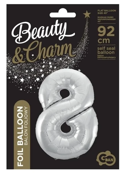 Balon foliowy cyfra 8 Beauty&Charm srebrna 92cm - Godan
