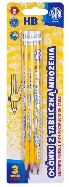 Ołówek z tabliczką mnożenia 3szt. ASTRA - ASTRA papiernicze