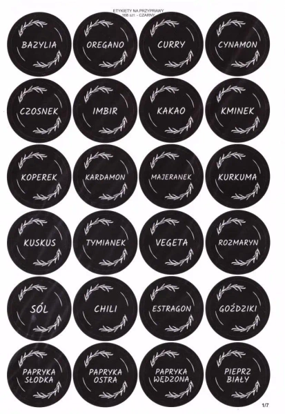 Etykiety na przyprawy czarne 40mm 168szt - LearnHow