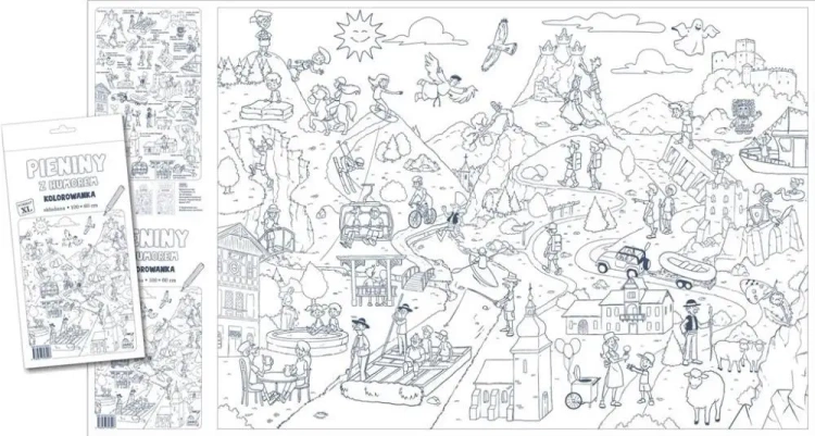 Dzięki intrygującej kolorowance "Pieniny z humorem" każde dziecko ma okazję wyruszyć na pełną uśmiechu podróż po tym uroczo malowniczym zakątku Polski. W trakcie tej zabawy młodzi artyści mają szansę zgłębić wiedzę o charakterystycznych dla Pienin szczytach, budynkach, symbolach oraz znanych postaciach. To idealna okazja na kreatywne spędzenie czasu z kredeczkami w dłoniach, a równocześnie fascynujące odkrywanie świata na dużym, bogato ilustrowanym arkuszu o rozmiarach 100 x 60 cm.
