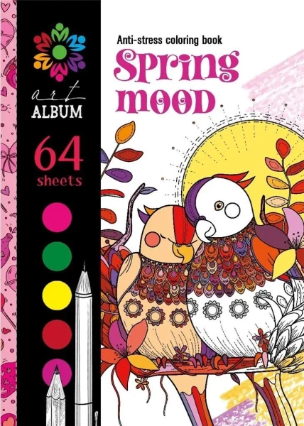 Kolorowanka antystresowa zawiera 64 obrazki. Oderwij się od codzienności i poczuj wiosenny klimat. Kolorowanie to najlepszy pomysł na kreatywne spędzenie czasu. Oprawa twarda. Wyprodukowano na Ukrainie.