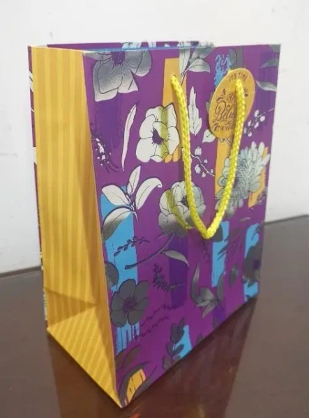 Złocista, ozdobna torebka prezentowa, idealna na każdą okazję. W zestawie znajduje się również dołączony bilecik.