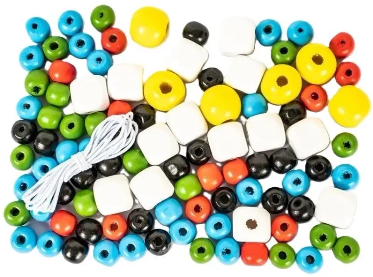 Prezentujemy komplet drewnianych koralików dostępnych w wielu kolorach. Każdy koralik ma rozmiar od 10 do 15 mm. W zestawie otrzymasz aż 100 sztuk tych dekoracyjnych elementów. Dodatkowo, do zestawu dołączona jest 1-metrowa guma w kolorze białym.