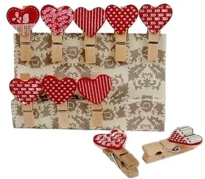 Te dekoracyjne klamerki w kształcie serc od Fandy wykazują wymiary 35 x 7 mm, a także grubość na poziomie 10 mm. Tworzone są one z naturalnych materiałów i mają na sobie aplikacje. W jednym opakowaniu znajdziesz ich 10 sztuk.