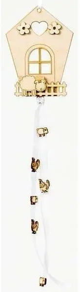 Prezentowany produkt to dekopracja drewniana, idealna do umieszczenia w domowym wnętrzu lub za zawieszenia na drzwiach. Charakteryzuje się wymiarami 11 x 15 cm i całkowitą długością wynoszącą 40 cm.
