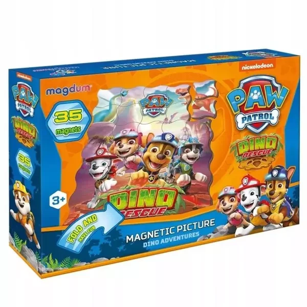 Magnesy utrzymane w tematyce Psi Patrol Dino są solidne, łatwe do chwytania dla małych rączek i całkowicie bezpieczne dla twojego dziecka. Zestaw odpowiedni dla dzieci od 3. roku życia.